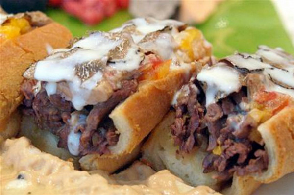 Филадельфийский классический чизстейк начинает список самых дорогих стейков в мире. Рибай Вагю посыпается трюфелями, сыром, карамельным луком, помидорами и подается с фуа-гра и свежей только что испеченной булочкой. Такой восхитительный сэндвич будет хорошо сочетаться с бокалом Dom Perignon 2000 года. Роскошное блюдо не оставит ни одну девушку равнодушной на свидании.